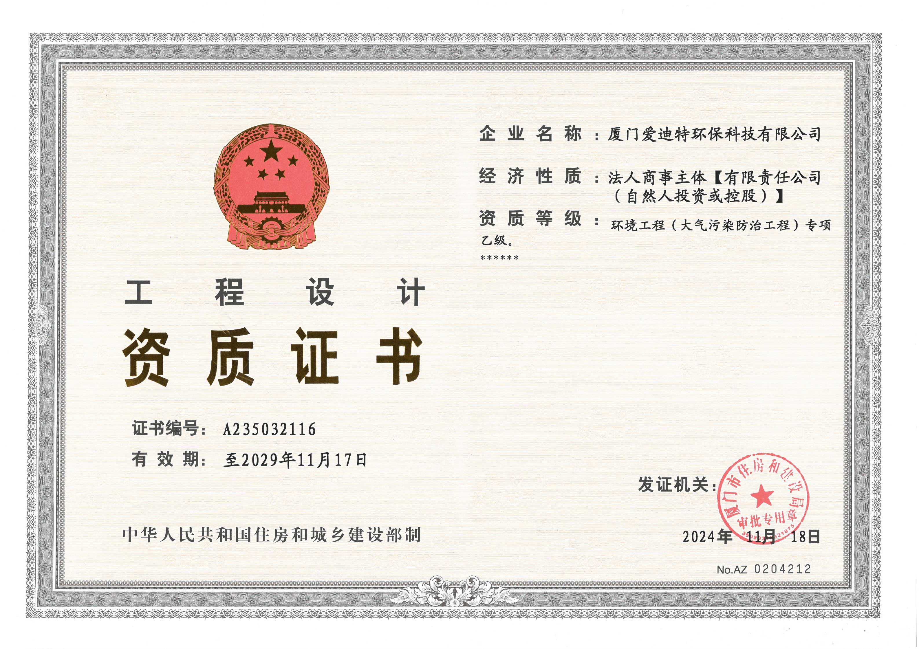 環(huán)境工程(大氣污染防治工程)專項(xiàng)乙級資質(zhì)